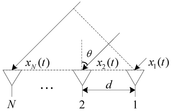 where is the signal incident angle, is the wavelength, and is the array spacing. A schematic diagram of the uniform linear array is shown in Figure 3.