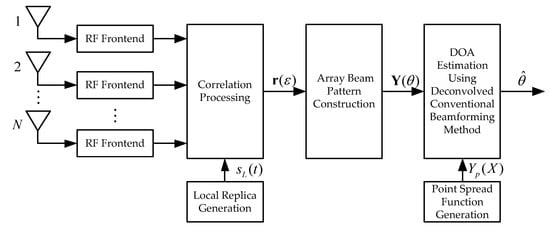 To address these limitations, a DOA parameter estimation method based on deconvolved conventional beamforming is proposed. Firstly, a conventional array pattern is constructed in the correlation domain. The array pattern has translation invariance and can be equivalent to the convolution of the basis function and the impulse response function of the signal incident direction. Then, the deconvolution method is used to estimate the precise DOA parameters of the signal sources. The processing frequency of the proposed method is the same as the loop update frequency of the GNSS receiver, typically in the order of milliseconds, making it suitable for both static and dynamic scenarios. However, it cannot be used concurrently with array interference suppression beamforming techniques. This is primarily because such techniques can cause distortions in the array beam pattern, which may lead to inaccurate estimations.