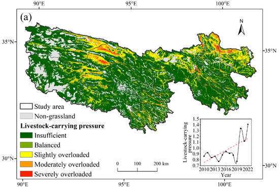 In this study, the grassland livestock carrying pressure index was employed to evaluate the forage–livestock balance condition in the TRSR: