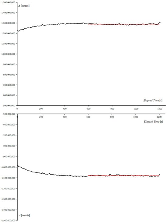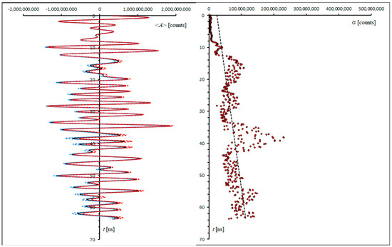 Let us consider now the problem of determining the uncertainty of the acquired data. As in any other forward modelling approach (e.g., in magnetic field modelling [28]), estimating the uncertainty of the observed data is necessary to obtain a threshold, and this is used to stop the trial-and-error fitting steps when the misfit between the observed and model trace falls below the estimated level of uncertainty. In the case of GPR data, the uncertainty has at least two distinct sources. There is an instrumental uncertainty, which is independent of the ground characteristics and can be estimated by a single experiment at an arbitrary location, and a spatial uncertainty that is related to the presence of small-scale disturbance at the air–ground interface. To estimate the instrumental uncertainty, we can perform an experiment at a fixed location through the acquisition of a single trace for a sufficiently long time interval.