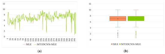 In real marine environments, variations in sea clutter amplitude characteristics are primarily concentrated within lower ranges of shape parameters. Even slight adjustments in these parameters within this range can significantly alter the probability density distribution of sea clutter amplitudes. Conversely, as shape parameters increase to higher numerical ranges, such as in the K and Pareto distributions, significant fluctuations in shape parameters yield relatively moderate changes in the probability density distribution of sea clutter amplitudes, indicating a weakened influence of shape parameter changes within this range. Therefore, a model capable of providing more accurate predictions in regions with smaller shape parameters is particularly important. Although the MT1DCNN’s predictions in the higher value range may not be as precise as in the lower value range (as reflected by a higher RMSE), in the region where the characteristics of sea clutter amplitude vary the most actively—namely, the region with lower shape parameters—the MT1DCNN demonstrates its position as the optimal model with the lowest MAE. This also reflects the robust predictive capability of the MT1DCNN model when handling complex data.