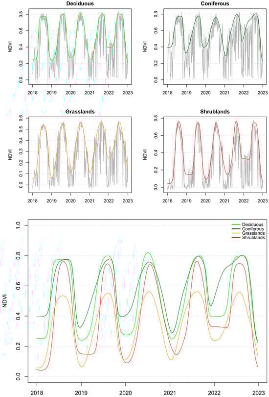 - Jonsson, P.; Eklundh, L. Seasonality Extraction by Function Fitting to Time-Series of Satellite Sensor Data. IEEE Trans. Geosci. Remote Sens. 2002, 40, 1824–1832. [Google Scholar] [CrossRef]