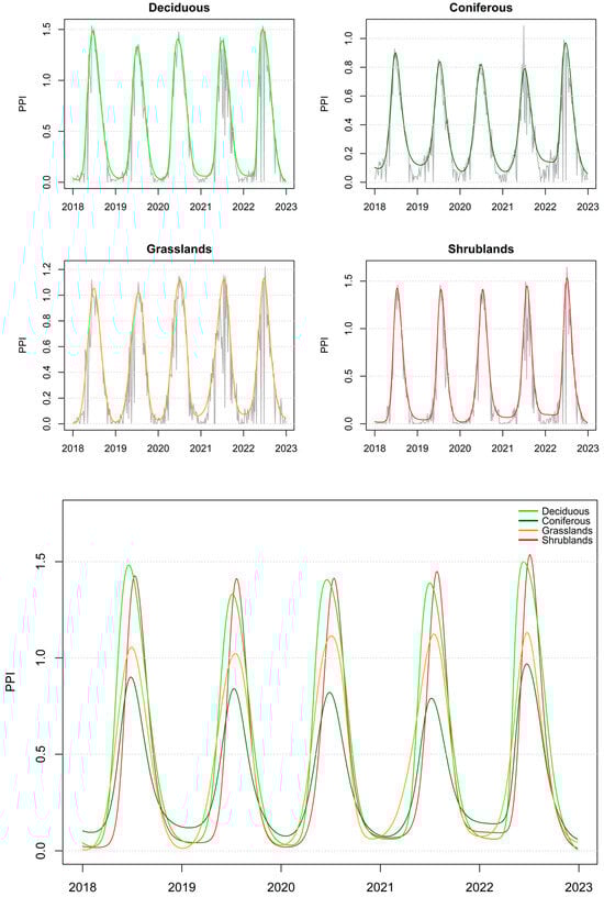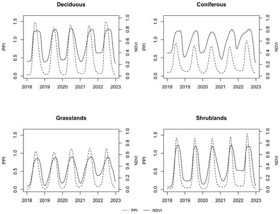 2.2.4. PPI and NDVI Time-Series for Different Vegetation Classes