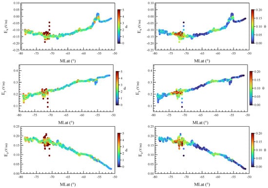 - Consolini, G.; Quattrociocchi, V.; D’Angelo, G.; Alberti, T.; Piersanti, M.; Marcucci, M.F.; De Michelis, P. Electric Field Multifractal Features in the High-Latitude Ionosphere: CSES-01 Observations. Atmosphere 2021, 12, 646. [Google Scholar] [CrossRef]