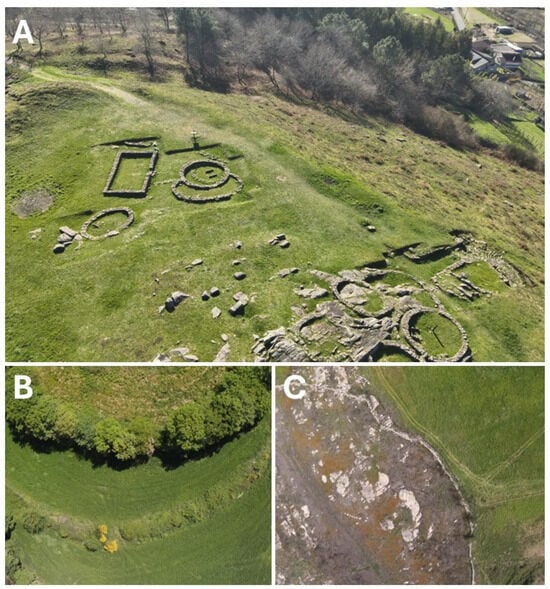 Several case studies clearly demonstrate the relationship between identified crop marks and semi-excavated archaeological structures, including smaller walls that constitute the hillfort dwellings. This confirms the usefulness of these non-invasive methods for archaeological prospecting in such environments. However, interpreting crop marks has been particularly challenged by recent disturbances to the terrain and, to a lesser extent, by factors such as climatic variability, which in some cases has complicated the clear identification of buried structures, as anticipated in prior literature. While this methodology does not provide as conclusive results as other non-invasive subsurface techniques, such as ground-penetrating radar, it has proven capable of detecting remains under favourable conditions. Notably, this methodology’s ability to detect historical excavations is of particular interest, given that past georeferencing methods were incomplete and imprecise. This approach has proven more agile in locating these interventions, facilitating the resolution of issues related to documenting and locating past interventions.