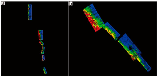 The obtained point cloud data: (a) the point cloud data of the Cangshan Piedmont Fault; and (b) the point cloud data of the Midu Basin Margin Fault.