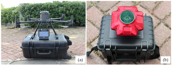 UAV photo acquisition equipment: (a) the DJI M300 UAV and (b) the oblique photographic camera.