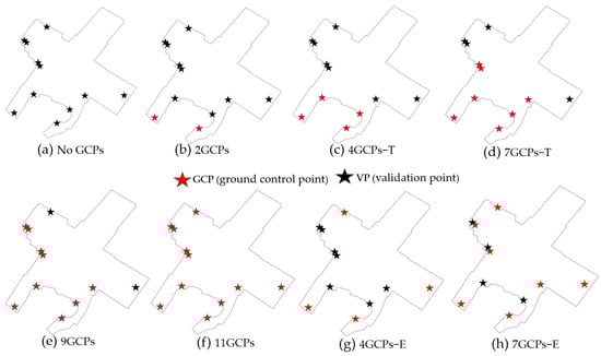 2.2.3. Accuracy Assessment with Different GCP Configurations