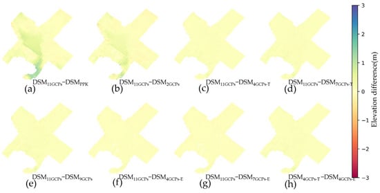 3.2.3. Inter-Comparison between UAV-DSMs with Different GCP Configurations