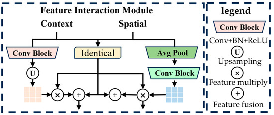 Figure 3, the IIM consists of semantic and spatial interactions. Semantic interaction generates a semantic probabilistic bootstrap map by refining features with up-sampling output and then fusing with spatial branches. Spatial interaction generates spatial information bootstrap maps by down-sampling refined features and combining them with contextual branches. Through the continuous interaction and fusion of CMFAM and IIM, they guide each other and finally constitute the base model framework. The specific parameters of the framework are shown in