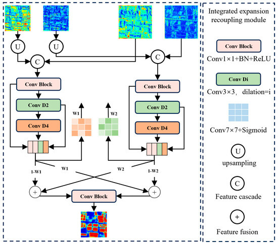 27] supplements the damaged information through the interaction of multiple layers of features and then fuses it. The two above multi-feature fusion methods, although there are differences in fusion timing and strengthening methods, essentially ignore the difference in features. This means the feature supervision cannot be effectively targeted, and the improvement effect is limited. The information decoupling module (IDM) [