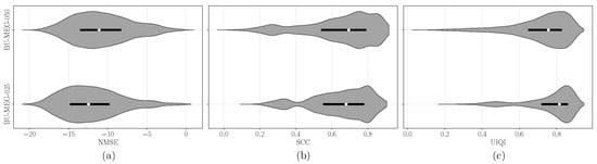 The Universal Image Quality Index (UIQI) [92] measures the quality of images by comparing the super-resolved image with the ground-truth . It evaluates three components: luminance, contrast, and structural information. The index ranges from −1 to 1, where 1 indicates perfect similarity, 0 indicates no similarity, and −1 indicates perfect negative similarity.