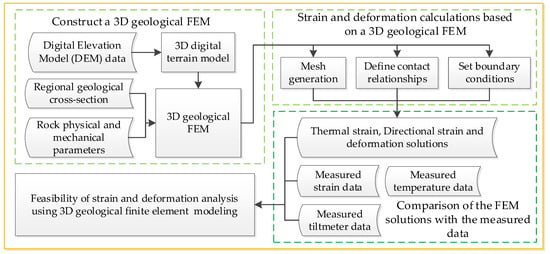 The process of strain and deformation analysis with 3D geological FEM.