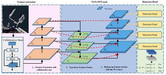 Structure of the proposed detection method illustrating the overall architecture, including the collaborative block components and the integration of the PCA attention mechanism, to enhance target detection in foggy conditions.