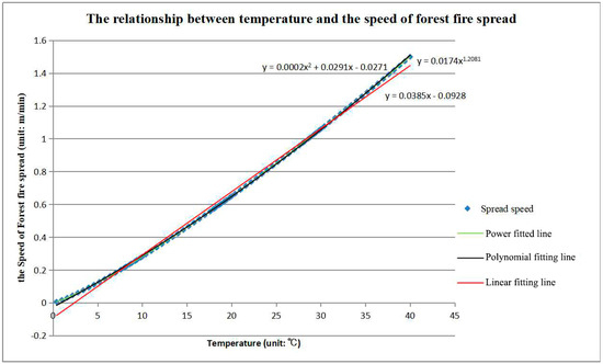 As shown in Figure 3, the relationship of the fire spread speed and temperature can be expressed as a linear equation: