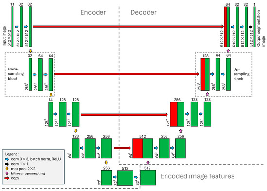 - Ronneberger, O.; Fischer, P.; Brox, T. U-Net: Convolutional networks for biomedical image segmentation. In: Medical Image Computing and Computer-Assisted Intervention–MICCAI 2015. Part III. Lect. Notes Comput. Sci. 2015, 9351, 234–241. [Google Scholar] [CrossRef]
