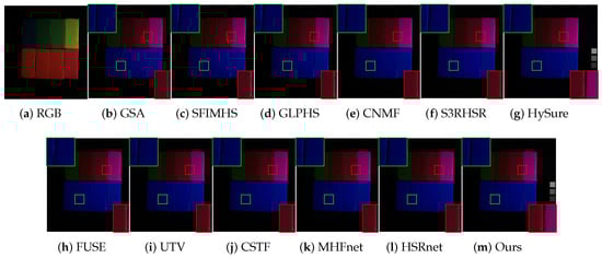 - Hu, J.; Huang, T.; Deng, L.; Dou, H.; Hong, D.; Vivone, G. Fusformer: A transformer-based fusion network for hyperspectral image super-resolution. IEEE Geosci. Remote Sens. Lett. 2022, 19, 6012305. [Google Scholar] [CrossRef]