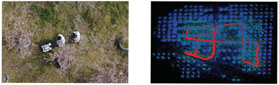The experimental data collection site was a nursery located in Zhenjiang, Jiangsu Province, China. The nursery, spanning a vast area, specializes in cultivating various common ornamental trees. It serves as a reliable source of high-quality seedlings for landscaping purposes. All seedlings were planted in pots filled with biochar soil and yellow soil. Additionally, each seedling was provided with supporting poles to ensure their healthy growth during the seedling stage. Figure 1 is the photo of the nursery from the air and the ground. The distance between trees varied from 3 to 5 m, ensuring that the machine antenna avoided unobstructed occlusion during the data acquisition process to capture enough data.