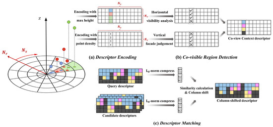Figure 5c shows the matching process of the descriptor. In order to achieve rotational invariance, the co-view context descriptor is compressed into an -dimensional vector as