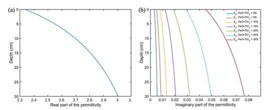 Dielectric profiles of lunar regolith. (a) Real part of the permittivity. (b) Imaginary part of the permittivity.