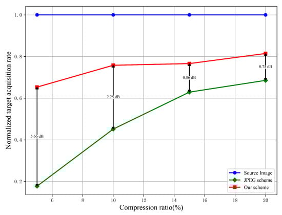 Target acquisition rate under different compression ratio on the MAR20 dataset.