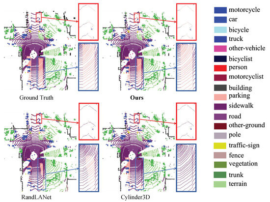 - Milioto, A.; Vizzo, I.; Behley, J.; Stachniss, C. RangeNet++: Fast and Accurate LiDAR Semantic Segmentation. In Proceedings of the 2019 IEEE/RSJ International Conference on Intelligent Robots and Systems (IROS), The Venetian Macao, Macau, China, 4–8 November 2019; pp. 4213–4220. [Google Scholar]