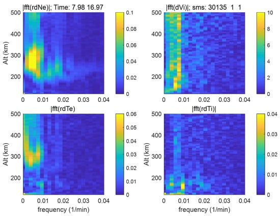 To analyze the frequency components, we display the magnitudes of the Fourier transform of the perturbations between 8:00 and 17:00 LT in
