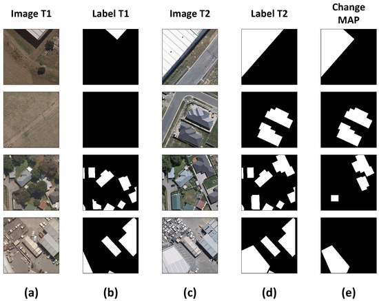 The BCDD dataset [72] (as shown in Figure 5) encompasses the region affected by a 6.3 magnitude earthquake in February 2011 in Christchurch, New Zealand. This dataset comprises two image scenes captured at the same location in 2012 and 2016, accompanied by semantic labels and CD labels for buildings. To manage the large image size of 32,507 × 15,354 pixels, we divided each image into non-overlapping 256 × 256 pixels image pairs, resulting in a total of 7434 pairs.
