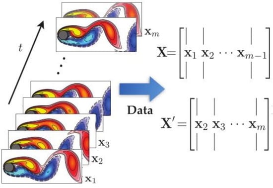 DMD is defined as follows: Given a dynamic system and two sets of observational data X and , where X contains the state vectors and contains , DMD can compute the matrix A that best fits . The matrix A is given by