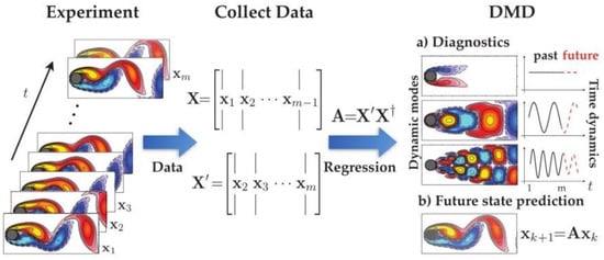 - Schmid, P.J. Dynamic mode decomposition of numerical and experimental data. J. Fluid Mech. 2010, 656, 5–28. [Google Scholar] [CrossRef]