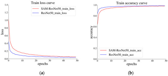 - The performance of SAM-ResNet50 with the addition of a spatial attention module reached an accuracy of 99.6%, which was superior to that of ResNet50.