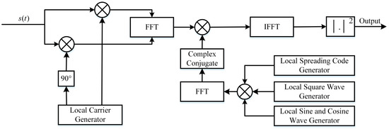 As the demand for large-scale, multi-type location-based services increases, global navigation satellite systems (GNSS) must accommodate various services by transmitting distinct navigation signals [1,2]. Binary offset carrier (BOC) modulation was developed to reduce interference between new and legacy signals while enhancing positioning accuracy. This technique has been widely implemented in GNSS [3,4,5]. The BOC signal is generated by multiplying a binary phase shift keying (BPSK) signal with rectangular spreading symbols and a binary offset square wave subcarrier, which divides the power spectral density (PSD) of the BPSK signal into lower and upper sidebands at negative and positive frequencies of the BOC subcarrier, respectively. While the autocorrelation function (ACF) of the BPSK signal displays a single triangular main lobe, the ACF of the BOC signal includes multiple triangular side peaks along with the main lobe.