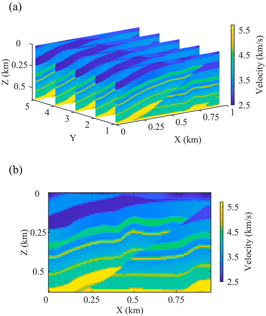 Velocity model. (a) Velocity models for generating the training set. (b) Velocity model for generating the test set.