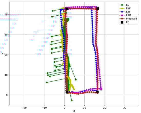 - Wang, C.; Xu, A.; Kuang, J.; Sui, X.; Hao, Y.; Niu, X. A High-Accuracy Indoor Localization System and Applications Based on Tightly Coupled UWB/INS/Floor Map Integration. IEEE Sens. J. 2021, 21, 18166–18177. [Google Scholar] [CrossRef]