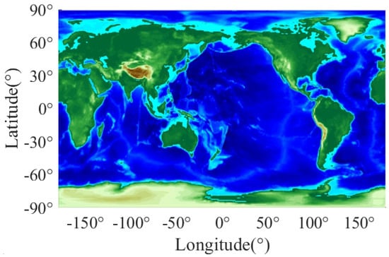 The data coordinates are transformed into the Earth-centered fixed coordinate system, the grid data of 1° × 1° are interpolated to 0.1° × 0.1°, and the grid data are stored in a table for simulation. The data are shown in Figure 6.