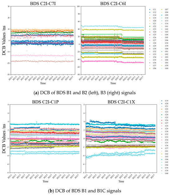 - Shi, Q.; Jin, S. Variation Characteristics of Multi-Channel Differential Code Biases from New BDS-3 Signal Observations. Remote Sens. 2022, 14, 594. [Google Scholar] [CrossRef]