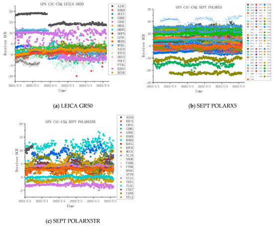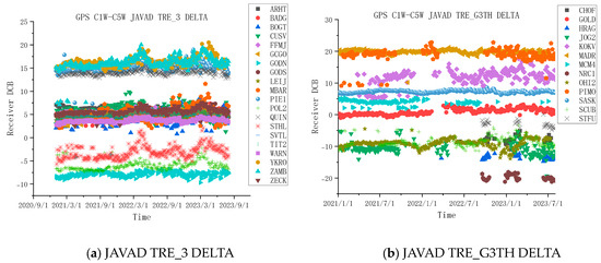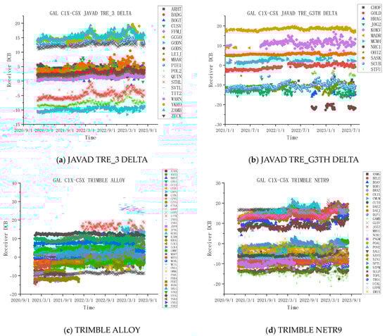 - Wang, Q.; Jin, S.; Hu, Y. Epoch-by-epoch estimation and analysis of BeiDou Navigation Satellite System (BDS) receiver differential code biases with the additional BDS-3 observations. Ann. Geophys. 2020, 38, 1115–1122. [Google Scholar] [CrossRef]