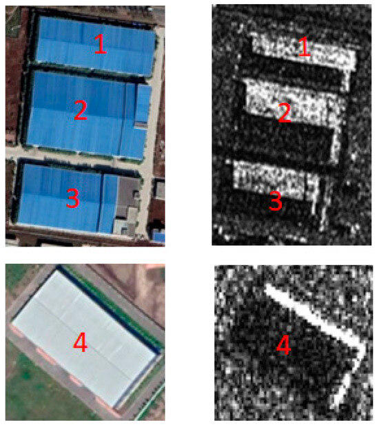 Although the number of satellites is continuously increasing, it can sometimes be challenging to obtain multiple sets of satellite data for the same region within a short period. Therefore, supplementing with other data sources can effectively enhance fusion efficiency. To this end, the point cloud obtained from optical satellite remote sensing images were fused with a coarse 3D model of the target obtained from SAR data to evaluate the effectiveness of the proposed fusion method. The optical and SAR remote sensing images used are shown in Figure 10.