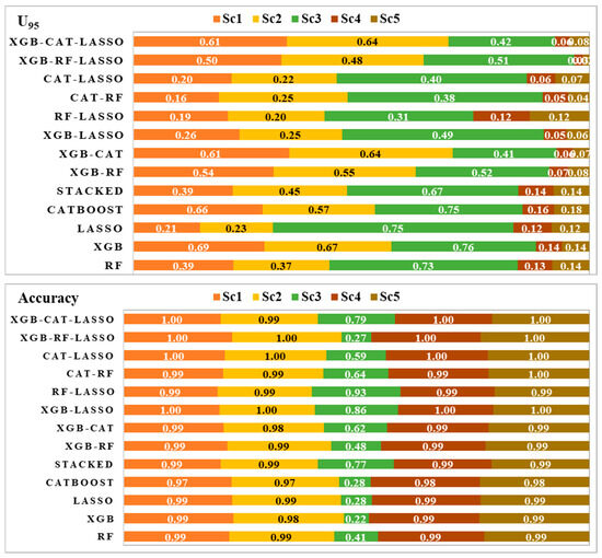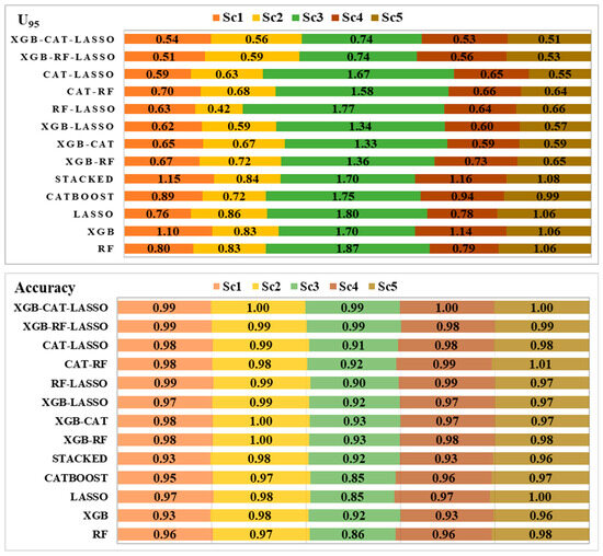 Furthermore, the analysis of RMSE highlighted the impact of hybrid models in reducing prediction errors. RMSE values varied across different scenarios and models, with the lowest and highest values observed under specific combinations. Similarly, the R2 values demonstrated the effectiveness of hybrid ML models in improving predictive accuracy. Differences in R2 values between different scenarios and models highlighted the importance of selecting appropriate base and meta-models when employing stacking ensemble techniques. While the proposed framework exhibited promising statistical evaluation metrics, limitations were identified in the model construction process. These complexities stem from the uncertainties regarding the selection of base models and the configuration of meta-model layers, as well as the lack of definitive guidelines on the optimal number of base models and layers for peak performance.
