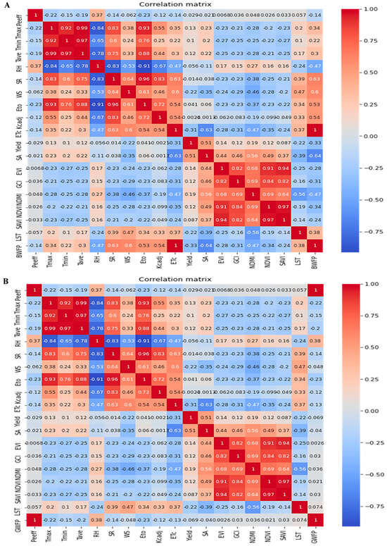 Random forest (RF), extreme gradient boost (XGB), least absolute shrinkage operator (LASSO), CATBOOST model (CatBoost), blue water footprint (BWFP), green water footprint (GWFP), Nash–Sutcliffe model efficiency coefficient (NSE), root mean square error (RMSE), mean absolute error (MAE), mean bias error (MBE), coefficient of determination (R2), uncertainty with 95% (U95).