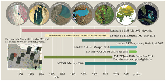 Recently, satellite constellations and sensors with large swaths, such as Sentinel-2, FORMOSAT-2, Chinese HJ-1, and GF-1, were launched, enabling global scans every few days at high resolution. Consequently, time series of remote sensing images have become increasingly available. Regional land cover maps with a spatial resolution of 30 m have been generated [3,6,7,8,9,10,11,12,13] through time series analysis of satellite images. Furthermore, the authors of [14] developed a land cover mapping method (LCMM) using multi-classifiers and multisource remotely sensed imagery, employing HJ-1/CCD and Landsat time series images to produce finer land cover maps at Heihe River Basin (HRB) for the years 1986, 1990, 1995, 2000, 2005, and 2011–2015 [14,15]. The earliest 30 m land cover products can be traced back to 1985, but they are limited to a few discontinuous datasets with poor accuracy before 2000. Due to the large volume of data and inconsistent quality, obtaining annual regional land cover products before the 1990s is highly challenging. Additionally, although Landsat time series imagery dates back to 1972, the availability of high-quality images with low cloud cover in China is limited, and the majority of data availability started from 1986. Therefore, long time series of historical land cover datasets before 1986 have been in great demand but still unavailable, even at the regional scale.