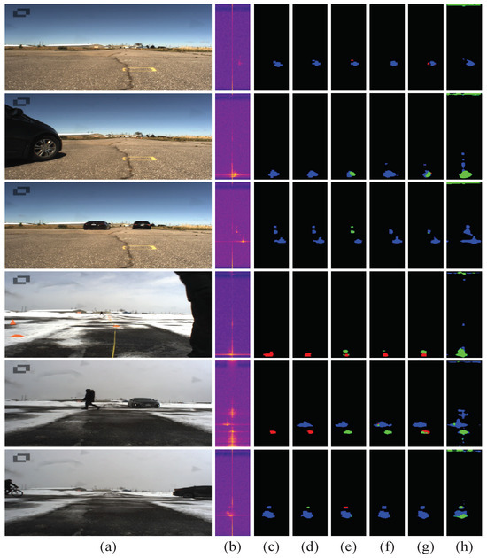 In the training phase, this paper utilizes four past frames to assist in the semantic segmentation of the current frame, with a single input channel. The input size for the RA view is , while the RD and AD view sizes are both . The batch size is set to 6, and the chosen optimization algorithm is the Adam optimizer, with an initial learning rate of 0.0001. The learning-rate adjustment strategy adopts exponential decay.