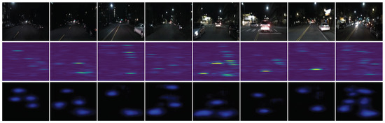 Due to the lack of RD data in the CRUW dataset, we use the RadarFormer [64] framework to tackle this issue. However, its model is replaced by the proposed U-MLP module, forming U-MLPNet. This adaptation enables our model to be applicable for single-view object detection tasks. Apart from RadarFormer and the proposed model, which accept 32 radar frames as input with 4 chips, 2 input channels, and a size of , the other algorithms employ 16 input frames with 1 chip and a size of . The hyperparameters utilized in the experiments, such as batch size, initial learning rate, and optimizer selection, are all in accordance with those of the CARRADA dataset, while a cosine annealing algorithm is applied for learning-rate adaptation. To evaluate the detection performance of various algorithms, 36 sequences from the CRUW dataset are used for training, while 4 are reserved for testing. The training process for all networks is conducted using PyTorch (version 1.12.1) on an NVIDIA RTX 4090 24 GB GPU (NVIDIA Corporation, Santa Clara, CA, USA).
