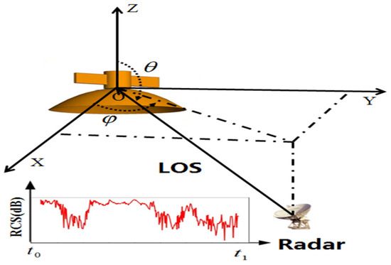 Parabolic antennas are widely used in spacecraft such as communications satellites and synthetic aperture radar (SAR) reconnaissance satellites due to their excellent high gain and high directivity. The orientation information of their payloads is an important basis for analyzing and assessing the intentions of spacecraft actions. By accurately estimating the orientation of the parabolic antenna payloads, it is possible to reveal the spacecraft’s communication targets, observation objects, or potential reconnaissance activities, which is crucial for space situational awareness and space security [1,2,3]. Radar, with its outstanding technical advantages such as all-weather, all-hour, long-range radar and high reliability, has become an important piece of equipment for monitoring the status of spacecraft in orbit [4,5,6,7]. How radar measurement information can be used to determine the orientation of spacecraft parabolic antenna payloads and subsequently analyze their potential intentions has become an increasingly important research direction.