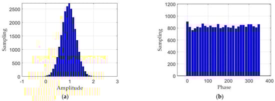 Signal distribution characteristics of jamming. (a) Amplitude, (b) Phase.