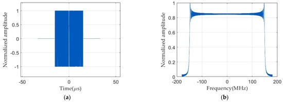 The directly received SAR signal. (a) In the time domain, (b) In the frequency domain.