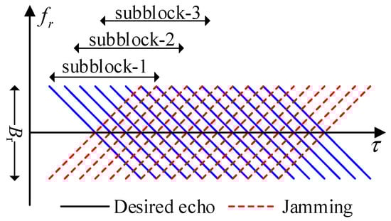 where is the middle time of the m-th sub-block. As shown in Figure 6b, the energy of the desired echoes is concentrated, while the energy of jamming is dispersed in the whole range sampling frequency.