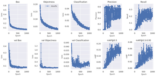 Figure 3 shows a graph of detection parameters used in object detection. The ‘Box’ graph depicts the loss incurred when the predicted bounding boxes fail to cover objects accurately. The ‘Objectness’ graph signifies the loss attributed to erroneous object predictions. ‘Classification’ loss reflects inaccuracies in identifying the correct object class. These metrics collectively highlight the model’s proficiency in object detection, as evidenced by the accurate prediction of bounding box sizes and high confidence in object presence. YOLO generated this figure after the training process was completed.