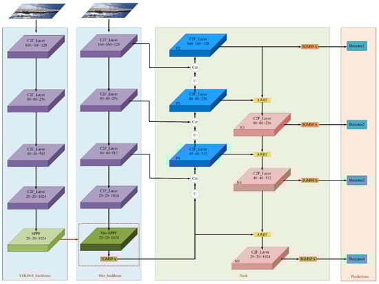 Multi-scale feature fusion represents a key strategy for augmenting the detection performance of a model and has been extensively utilized in the domain of object detection. The underlying principle of this methodology is that shallow feature maps exhibit high resolution and encapsulate intricate details, yet they are characterized by limited semantic richness and heightened noise; in contrast, deep feature maps provide substantial semantic information but suffer from lower resolution and reduced detail fidelity. By synergistically integrating shallow and deep feature maps, it becomes possible to leverage their respective strengths, thereby enhancing the overall detection efficiency of the model.