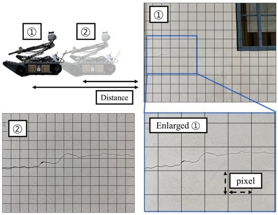 Figure 3 shows the proportion of the area that an object occupies per pixel according to the resolution of the image file. If the image is small with the same resolution, the object’s area in the pixel unit increases. The changes also affect the detection model training by changing the area accounting for an object in each pixel unit. There is nothing wrong with having large objects that take up a large area in a picture. However, learning multiple small objects rather than a large object is much more helpful in training the object detection model [37,38]. In [32], it was reported that performance improved when learning using data with a complex background, compared to data focused on cracks.